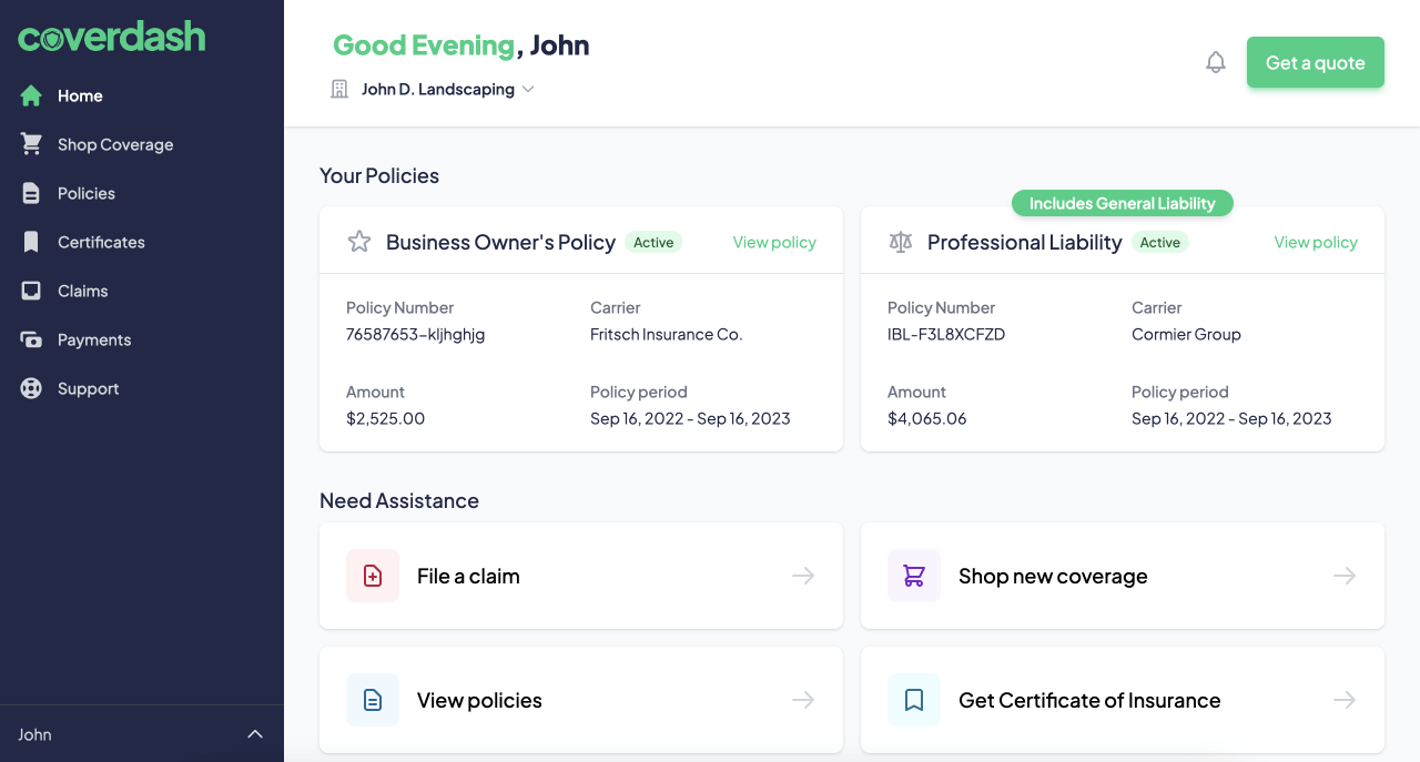 Based in New York City, Coverdash simplifies the process of buying and managing business insurance for e-commerce merchants, gig workers, and all other types of businessowners. The company offers a broad range of commercial insurance products, including liability, property, workers' compensation, and cyber. Coverdash's digital insurance experience enables businessowners to quote, bind, pay for, and actively manage insurance policies in a matter of seconds. Through relationships with many of the world's most recognized insurers, Coverdash provides the coverages growing businesses need at the most affordable rates.