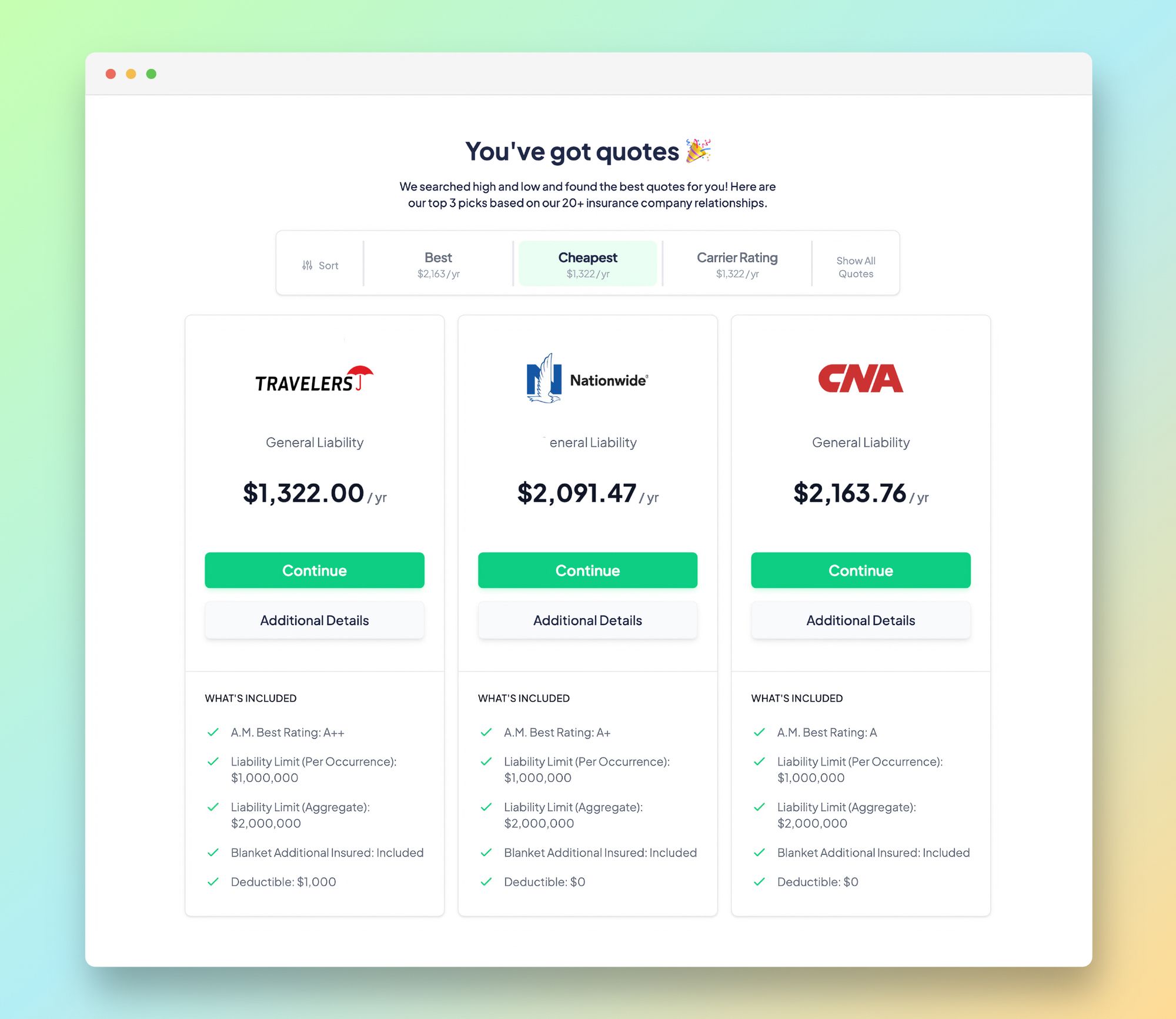 True to our mission, Coverdash is now launching a startup insurance offering tailored specifically to the needs of each startup. Through Coverdash's digital insurance experience, startup founders can now source fully-bindable insurance quotes from the nation's leading insurance companies, all within minutes. This streamlined process saves valuable time and ensures that startups can obtain the coverage they need to protect their businesses effectively.